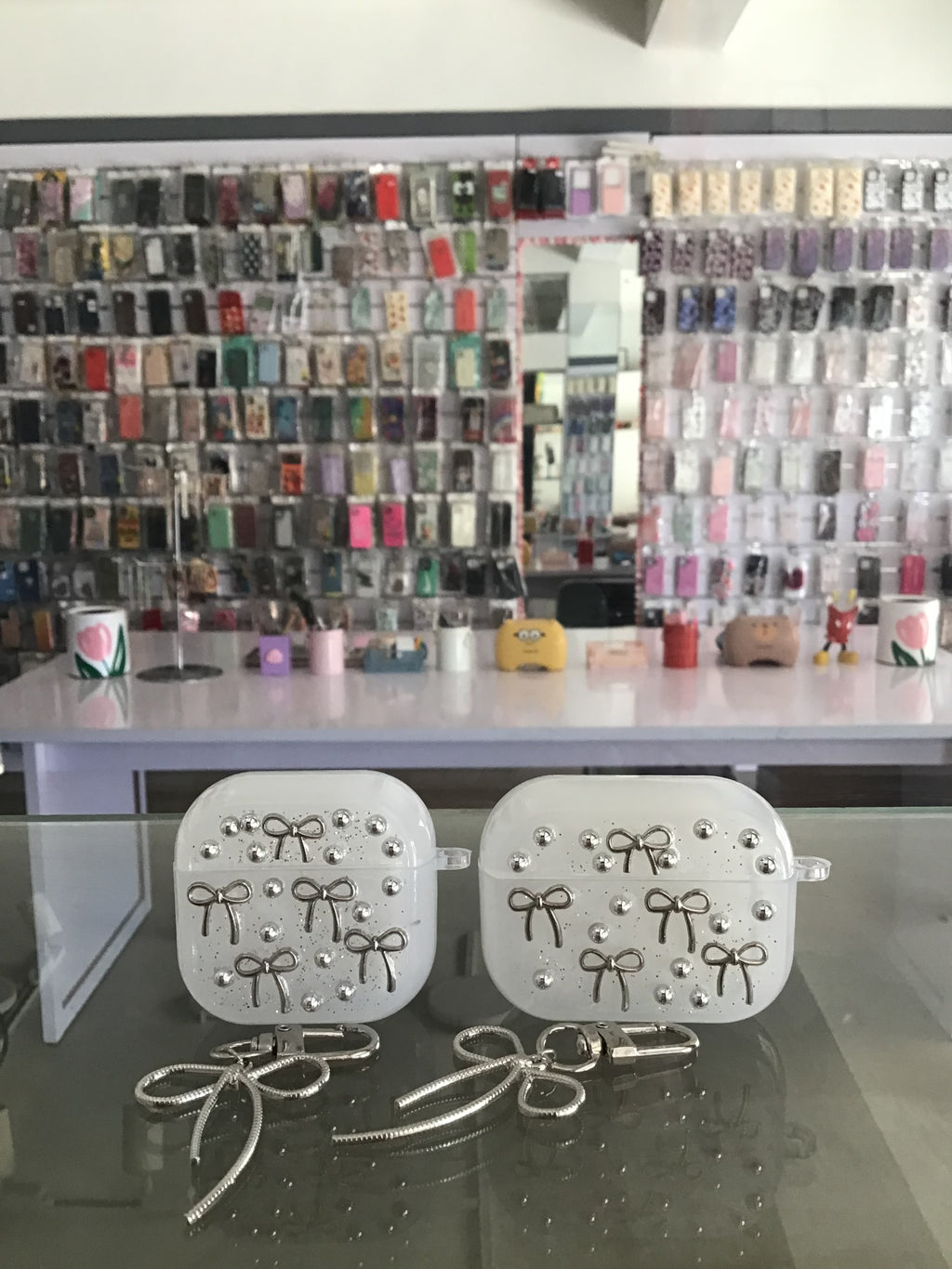Silver Pearl Bow AirPods Case